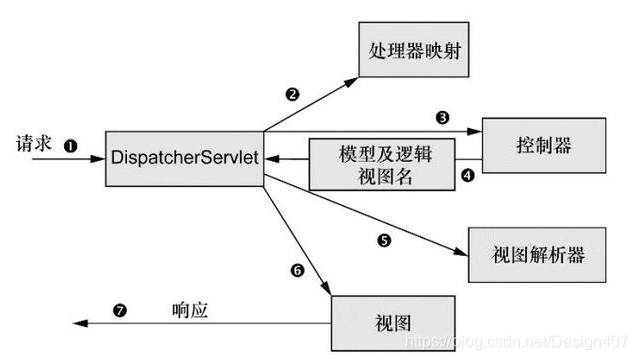 在该框架下,一次web请求大致可以分为如下图几个步骤,这些划分分离了职责,使得代码灵活、维护性更好。